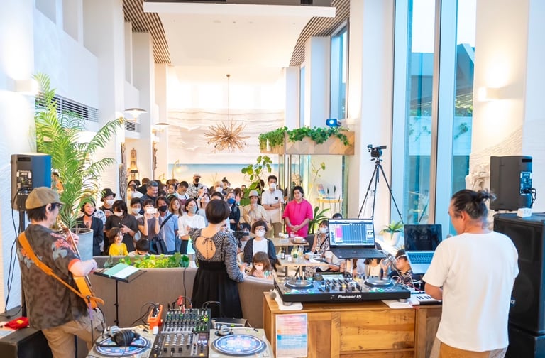 開放的な吹き抜けのロビーラウンジで開催されるumi conexión “Hayamatic!”は、アンビエントでグルービーなサウンドとともに、会話やお酒を楽しんでいただける、心地良い音楽イベントです。